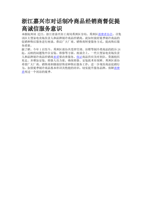 浙江嘉興市對(duì)話制冷商品經(jīng)銷商督促提高誠信服務(wù)意識(shí)