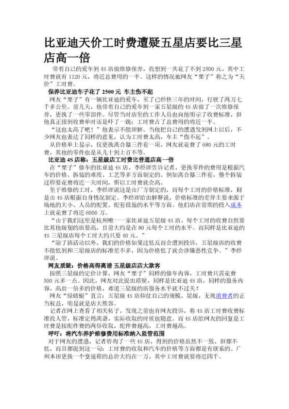 比亞迪天價(jià)工時(shí)費(fèi)遭疑五星店要比三星店高一倍