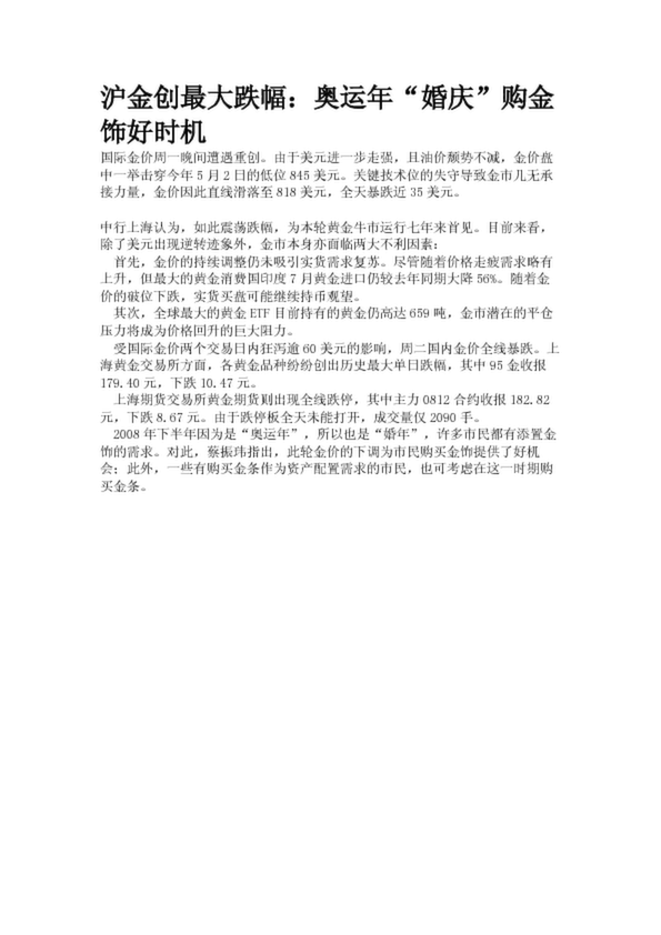滬金創(chuàng)最大跌幅:奧運(yùn)年“婚慶”購(gòu)金飾好時(shí)機(jī)